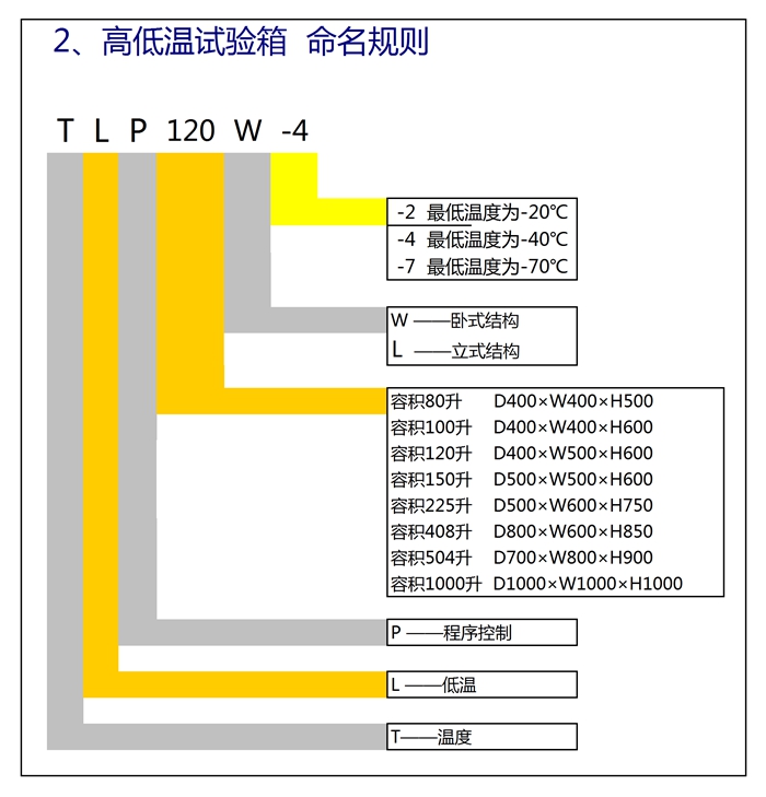 深圳市富易達儀器有限公司專業生產系列化、標準化的高低溫試驗箱等環境試驗箱、試驗設備,其中高低溫試驗箱TLP系列產品主體結構分成臥式和立式結構,這里對TLP系列高低溫試驗箱的命名規格進行說明,方便客戶選擇富易達儀器公司高低溫試驗系列產品的時候參考。