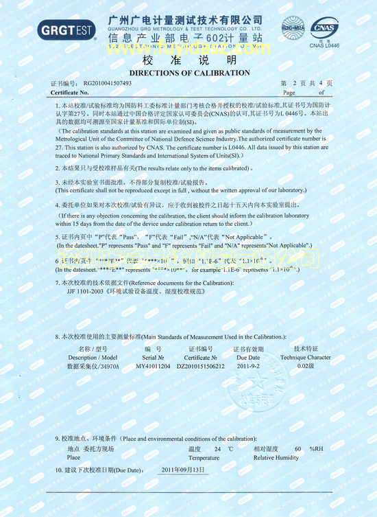 附件:信息產業部電子602計量站校準報告