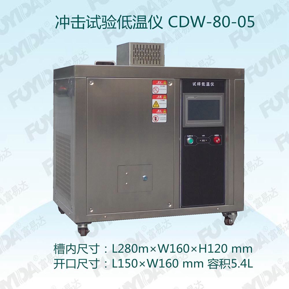 CDW-80-05 型沖擊試樣低溫儀是本公司根據GB229-2007《金屬夏比缺口沖擊試驗方法》中對低溫裝置的要求而最新研制開發的兩級復疊式壓縮機制冷設備。本設備采用“阿斯巴拉”壓縮機、丹弗斯控冷配件;利用工業酒精為低溫介質;利用熱平衡原理設計專用的觸摸屏控制系統,利用循環攪拌方式達到溫度均勻;利用低溫增壓循環泵可使槽內低溫介質到達第二現場,對其進行冷卻和恒溫。可完全滿足國家標準GB229-2007規定的各項控溫指標。